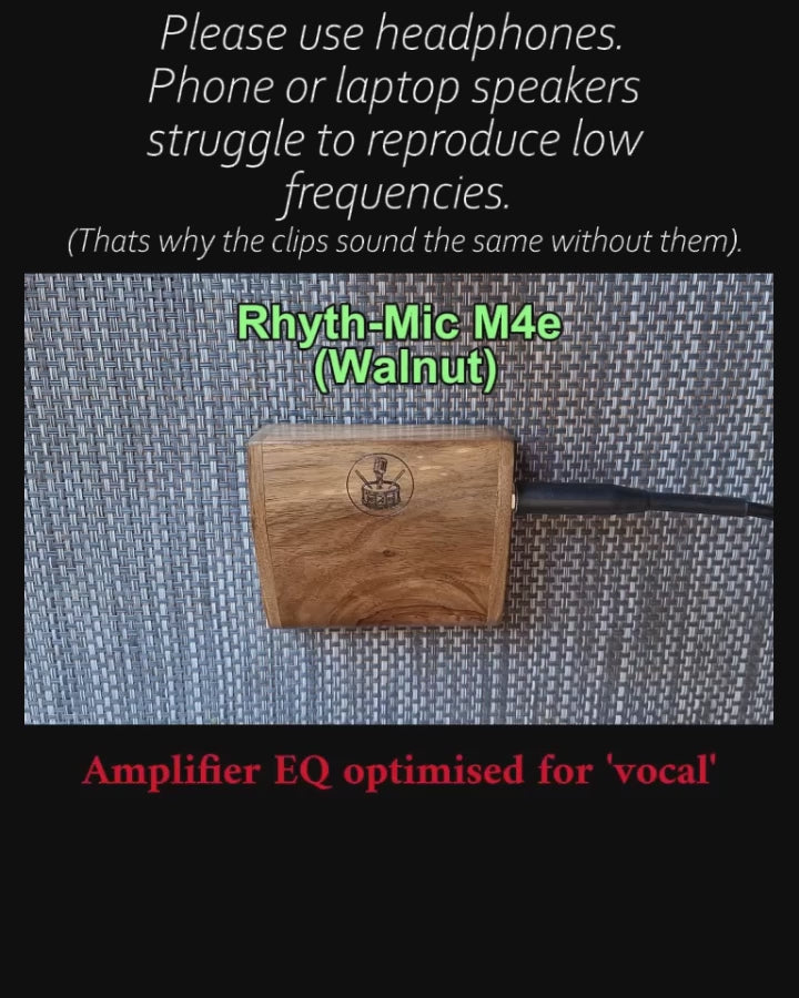 Rhyth-Mic M4e compact solid walnut wood percussion stompbox Microphonic.